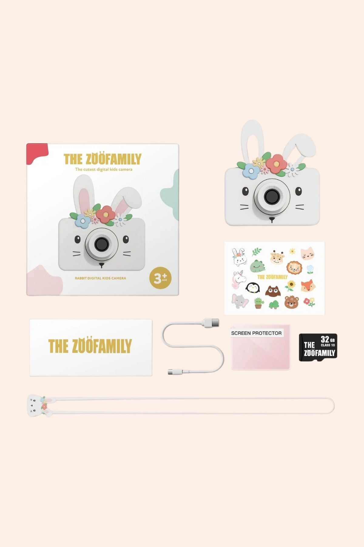 This adorable 32 megapixel digital camera and video recorder, designed with a charming rabbit flower theme by The Zoofamily, is perfectly compact and lightweight. Personalize your child's camera with stickers and explore over 20 digital filters and frames for creative fun.
