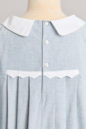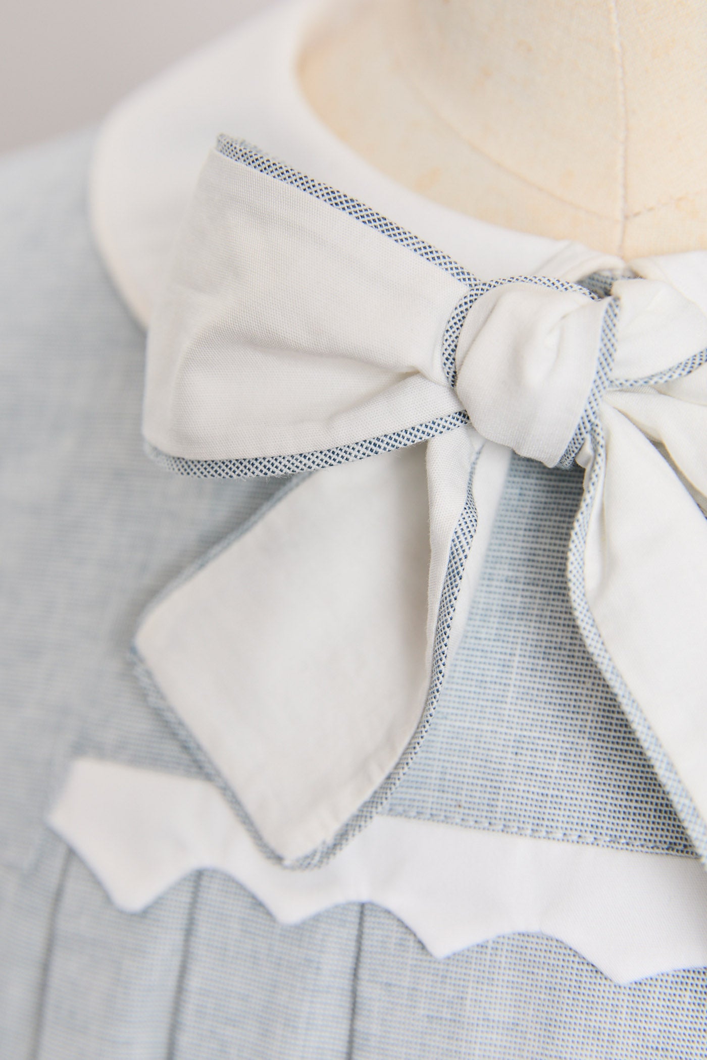 Say hello to Miss Ziggy in a dreamy shade of Misty Blue. Fresh, fun, and effortlessly elegant, this dress is a true testament to our seamstresses’ artistry. Crafted from the finest light-blue cotton poplin with a delicate woven dot, it embodies understated sophistication.
