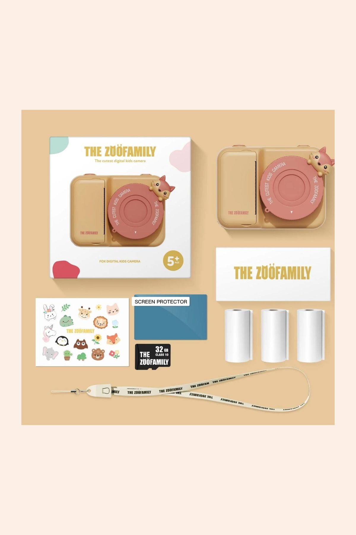 Introduce them to the wonders of photography with our stylish kids' fox instant print camera! This charming point-and-shoot camera prints black and white photos instantly or stores them for later printing. Using heat transfer technology, it eliminates the need for costly ink cartridges. The camera features a bright 3-inch color screen, lens protection, and high print resolution.